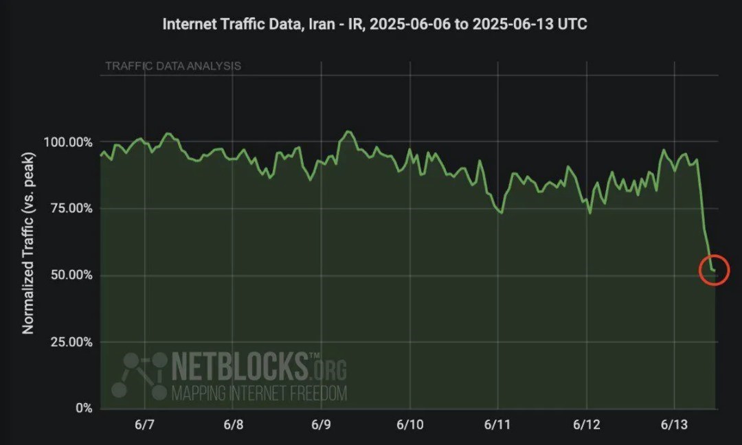 دادههای منتشر شده توسط نتبلاکس در ۱۸ ژوئن ۲۰۲۵ (۲۸ خرداد) نیز حاکی از کاهش چشمگیر ترافیک اینترنت در ایران بود. نتبلاکس توضیح داد که این اتفاق همزمان با تشدید تنشها با اسرائیل رخ داده و احتمالاً دسترسی عمومی به اطلاعات را در این زمان بحرانی به شدت محدود میکند.